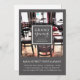 This classy restaurant grand opening invitation features a simple charcoal grey and white design, and includes the restaurant's photo and name of the business. This modern and minimal design also includes details such as the restaurant's address and rsvp information.