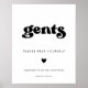 Gentlemen Bathroom Sign for your wedding guests. A retro chic theme: adopt this slightly vintage and stylish typographic design for your wedding stationery, with a classic black and white theme. Customizable text colours and backgrounds.