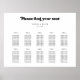 Horizontal wedding seating chart. The chart in the example has 10 tables and 100 names, but you can easily edit it to suit your needs with the design tool. A retro chic theme: adopt this slightly vintage and stylish typographic design for your wedding stationery, with a classic black and white theme. Customizable text colours and backgrounds.