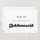 A simple and elegant text card keepsake to thank your bridesmaid. A retro chic theme: adopt this slightly vintage and stylish typographic design for your wedding stationery, with a classic black and white theme. Customizable text colours and backgrounds.