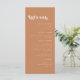 Let's eat! Wedding or reception party menu. A retro chic theme: adopt this slightly vintage and stylish typographic design for your wedding stationery, with a burnt orange, terracotta, brown sugar & peach pink colour theme. Fully customizable text, colours and backgrounds.