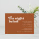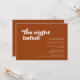 The night before... Make sure everything is perfect for the big day; get some modern invitations for your wedding rehearsal dinner. A retro chic theme: adopt this slightly vintage and stylish typographic design for your wedding stationery, with a burnt orange, terracotta, brown sugar & peach pink colour theme. Fully customizable text, colours and backgrounds.