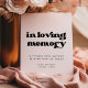 In loving memory: memorial wedding sign. A retro chic theme: adopt this slightly vintage and stylish typographic design for your wedding stationery, with a classic black and white theme. Customizable text colours and backgrounds.