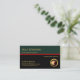 The upper green layer has your prestigious name and job title. Towards the right wall is a slogan option for you to publicize your services. Below the caption is a gold manpower logo you can use. The business name and contact details are at the lower left corner of the card.