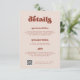 Wedding guest information card: don't forget this useful card with all your important wedding details like accommodation, transportation and gifts, with your QR code to redirect your guests to your website. A retro chic theme: adopt this vintage and stylish typographic design for your wedding stationery, with a peach pink colour theme. Easy to mix and match with our similar stationery available in burnt orange, terracotta & brown sugar. Fully customizable text colours and backgrounds.