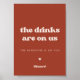 The drinks are on us, the hangover is on you: Open Bar wedding sign. A retro chic theme: adopt this vintage and stylish typographic design for your Wedding stationery, with a terracotta colour theme. Easy to mix and match with our similar stationery available in peach pink, rust orange & brown sugar. Fully customizable text colours and backgrounds.