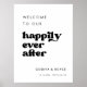Welcome to our Happily Ever After Wedding Sign. A retro chic theme: adopt this slightly vintage and stylish typographic design for your wedding stationery, with a classic black and white theme. Customizable text colours and backgrounds.