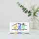 Overleaf, details are at the card's right wall with a gold home landscape logo you can use, at the top. This is followed by your prestigious name, the contact details and a slogan option. A similar dark grey stripe encapsulates the base of the card.
