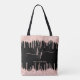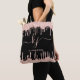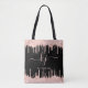 Sylish, Girly, Elegant, Light Rose Gold Glitter Drips 2 Monogram Script custom personalized name monogrammed tote bag on black. Featuring a modern luxury faux light pink rose gold glitter dripping frame, a large double hand lettered monogram script font with swashes (large size initials), and a serif type font name in light pink on black background. Easy to personalize it. Great feminine girly gift for girlfriend, mother, birthday, wedding, sweet 16 birthday party, bridal shower, and baby shower, business, professional work and for anyone who like pretty glamourous shiny things.