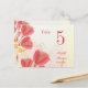 This trendy Wedding table number card has a salmon pink, soft pink, and orange colour scheme with lots of tulips lining the left and bottom side of the postcard. On the top and right side, you can easily customize the table number and the names of the bride and groom along with the date of the wedding ceremony. The colours and design of this Wedding Invitation make it suitable for a spring or summer wedding.