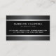 Elegant, black and grey, professional business cards or personal profile cards with your name and title/company name printed on the front. At the top and bottom are printed satin grey and silver gradient borders. White and grey text. On the back are customizable template fields for name, title/company name/specialty and contact information. A minimal, classy and modern design. Great for an attorney, lawyer, accountant etc