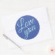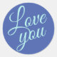 Stylish Script Cute Love You Blue Quotes Classic Round Sticker
