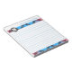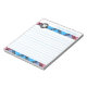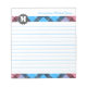 Modern, chic and trendy customizable notepad features "a note from personalized name" at the top, "personalized monogram" on grey leather badge on blue / pink plaid tartan beneath and blue / pink / black plaid tartan at the bottom on white lined background.