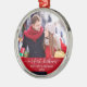 Elegant Stylish Trendy Script Our First Christmas Couple Photo Red Ornament