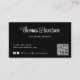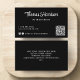 Elegant black professional business card featuring your name or brand showcased in a bold stylish white script and business type or title in clean white lettering. Input your website address to create a QR code that customers and clients can scan for a list of your products, services, hours, etc., and add your instagram and facebook user ids for customers to follow and connect with you on social media. You can add additional information on the back or leave it blank.