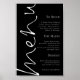 Stylish Script Simple Black Wedding Menu. This modern black and white design has Menu in elegant set script running up the left hand side and the rest of the text is aligned to the right which you can easily personalise. Text and background colour can be changed to any of your choice via the edit further option.