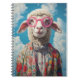 Stylish Sheep Pink Glasses Floral Attire Blue Sky Notebook