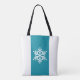 Stylish Snowflake Teal Blue White Vertical Stripes Tote Bag