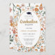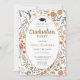 A fresh stylish spring wildflowers graduation party invitation in bold colours of orange, and pink with green leaves. If you want to change the font style, colour or text placement, simply click the "Customize Further" button and use the simple design tool. Available in print, as a digital download, or both.