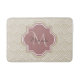 A stylish tan art deco arched scallop pattern bathmat with a light mauve quatrefoil badge you can personalize by easily adding your own monogram and name. This is part of the Warm Sand Scallops Ash Rose Monogram Spring Collection. Choose from 3 sizes.