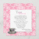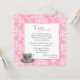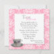 Elegant invitation done in a pink and white damask pattern, with a scalloped edge white text area. Graphics of a lovely china tea cup and saucer decorates the bottom left, of the invitation. All text is fully customizable to suit your needs. Lovely invitation great for any girly event.