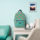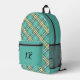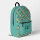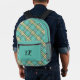 Stylish Teal Chequered Gold Glitter Border Initial Printed Backpack