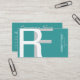 Monogrammed in huge lettering that fills the business card top to bottom and overlays the first name initial over the last name initial with a slight variance of colour, name and position title at a 90 degree angle on right edge of card - this has a textured overlay that will texture your monogram and background colour but leave the name and title clean - the back of the card leaves all of the text clean- CHANGE COLOR of the background by choosing Customize, use the edit drop down box for background colour - the one I have chosen here is a medium dark teal - the textured appearance will remain. NOTE: THIS card is NOT truly Textured, it is an artistically designed image to make it appear textured.
