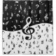 A stylish and eye-catching pattern of random musical notes in black and white with a large treble clef in the centre. The bottom of the design features black music notes on a white background with the top featuring white music notes on a black background. The large clef changes from black to white in colour half way.