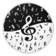 A stylish and eye-catching pattern of random musical notes in black and white with a large treble clef in the centre. The bottom of the design features black music notes on a white background with the top featuring white music notes on a black background. The large clef changes from black to white in colour half way.