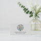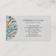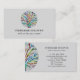 This stylish business card is decorated with a colourful mosaic tree of life design on a pale grey background.