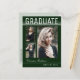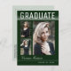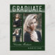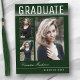 Modern, trendy and stylish graduation announcement postcards, featuring design elements of modern text with handwriting signature script. Three graduate photos highlight the front of the card with "Graduate" accented in a sleek white gradient. The back of the card offers personalized text spaces for information about your graduation and future journey. White writing on hunter forest green or easily customize the background to match your school's primary colour or any colour of your choice. Perfect for the high school, college and university grad.