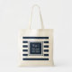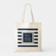 Stylish Trendy Monogram Navy Blue White Stripe Tote Bag