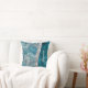 Stylish turquoise silver glitter leaves monogram throw pillow