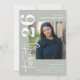 Celebrate in style with this minimal calligraphy script photo Graduation Party Invitation. Design features a sage green background, that can be changed to any colour, a picture of the grad, the text 'twenty25 in calligraphy script and a modern party template that is easy to customize using the template provided. The reverse is decorated with mortar boards.