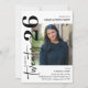 Celebrate in style with this minimal calligraphy script photo Graduation Party Invitation. Design features a classic white background, that can be changed to any colour, a picture of the grad, the text 'twenty25 in calligraphy script and a modern party template that is easy to customize using the template provided. The reverse is decorated with mortar boards.