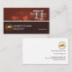 A simple design with a two columned, dual colour tone cover. The top portion is a city-lights bokeh scene. Towards its right are your your prestigious name and job title. Behind this space, there is an optional monogram to put your name initials. At the lower portion towards the left side lies a gold logo of a truck, that you can use, alongside its business name and contact details. At the opposite end, you have a slogan to advertise your services.