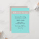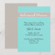 Streamlined and stylish this wedding rehearsal dinner invitation is done in a aqua blue colour, on the front, with a taupe stripe at the top and covering the back of the invitation. White text, across the taupe band, reads Rehearsal Dinner. All text is ready to personalize for your event.