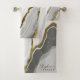Stylish White Marble grey Agate Gold Glitter Bath Towel Set