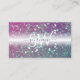 Make a lasting impression with this eye catching and stylish business card design featuring shimmery pink, purple and teal glitter with bright stars and on the reverse side there is a white background with a glitter border.