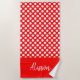 I am absolutely thrilled to introduce the stylish white polka dots pattern on this custom-name on red beach towel! It's the perfect accessory for any beach day, adding a fun and playful touch to your summer style. The vibrant red polka dots are effortlessly eye-catching and exude a sense of energy and excitement. Not only does it make you stand out from the crowd, but the personalization option with your name adds an extra level of uniqueness. Made with high-quality materials, this beach towel is not only aesthetically pleasing but also practical in its functionality. The soft and absorbent fabric ensures maximum comfort during your sunbathing sessions or refreshing dips in the ocean. So get ready to turn heads at the beach with this trendy and personalized beach towel, embracing all its delightful features with contagious excitement!