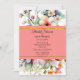 Pretty bridal shower invitation done in white, with colourful wildflowers. A coral and gold band, runs across the centre, of the invitation, and serves as the text area. Personalize the custom text to suit your event needs.