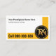 A white cover features a right angle yellow layered design. Riding on this layer is a gold taxi logo you can use alongside the phone contact. Just above this is the business name "TAXI SERVICE" and your prestigious name.