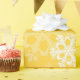 Stylish and modern festive pattern featuring a yellow background and elegant, white snowflakes. The clean, geometric snowflake design brings a touch of winter charm, adding sophistication and a festive flair. Perfect for wrapping gifts in a memorable and eye-catching way. This design seamlessly blend modern aesthetics with holiday spirit, making it an ideal choice for elegant holiday gifting, Christmas celebrations and spreading joy to all.