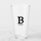 Pint glass for that refreshing, cold brew that features a person's initial and last name in black, stylized lettering. Personalize your glass by editing and replacing initial and last name with your own as desired. You may customize further to edit font styles and size. Always a trendy gift for a birthday or Father's Day.