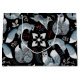 Seamless pattern of stylized blue foxes with intricate floral designs on black. Red accents and white flowers create a whimsical, mystical vibe.