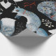 Stylized blue foxes with intricate floral designs Wrapping Paper