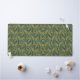 Seamless botanical pattern featuring stylized orange and black flowers and foliage on a muted green background.
