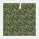 Seamless botanical pattern featuring stylized orange and black flowers and foliage on a muted green background.