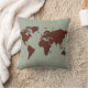 stylized brown world map throw pillow