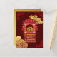 Design of stylized Chinese palanquin carrying a golden paper-cut of an Ox with its ideogram + Chinese greeting + large 2021 + Chinese red frame + golden auspicious clouds. Design on vertical holidays postcard with dark red background + golden textured paper (image printed) in back. You can easily change background colour and the position of all the different elements of the design by clicking the customize button. Matching greeting card, invitations, craft products, party supplies and more... Perfect for Chinese New Year of the Ox 2021.